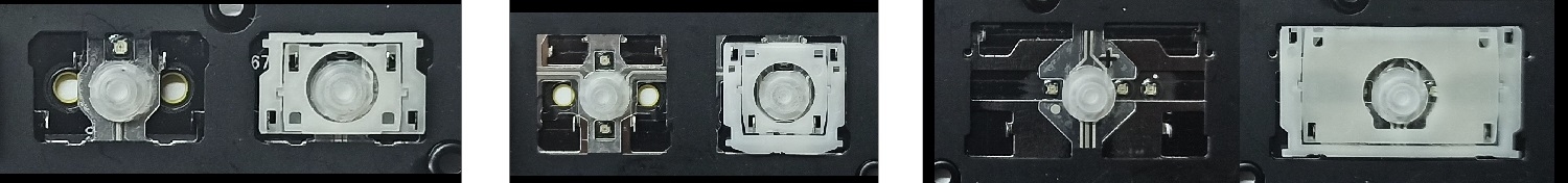 - Bei den meisten Tastaturen, die von außen identisch aussehen, wurden unterschiedliche Arten von Scharnieren unter den Tasten verwendet.