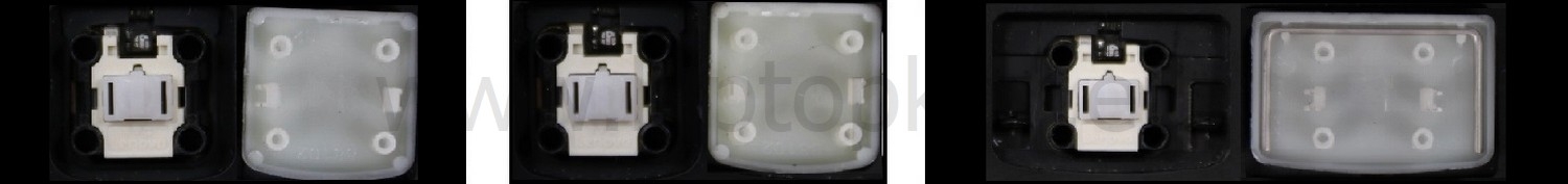 - Bei den meisten Tastaturen, die von außen identisch aussehen, wurden unterschiedliche Arten von Scharnieren unter den Tasten verwendet.