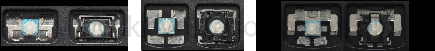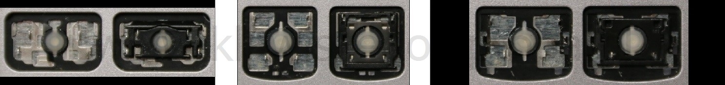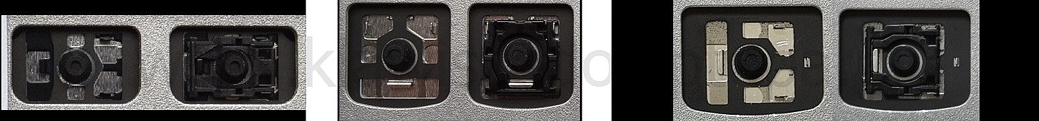- Bei den meisten Tastaturen, die von außen identisch aussehen, wurden unterschiedliche Arten von Scharnieren unter den Tasten verwendet.