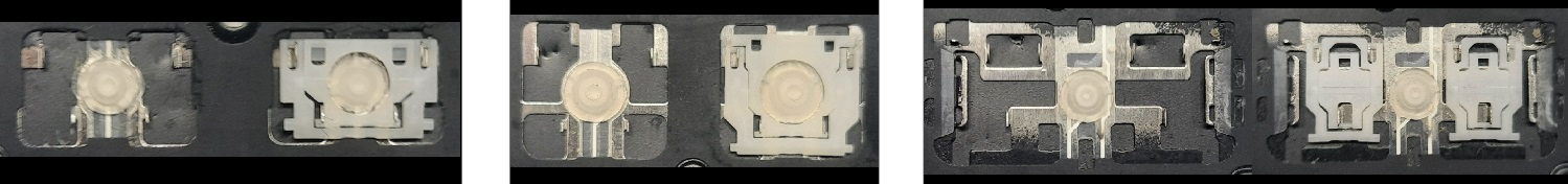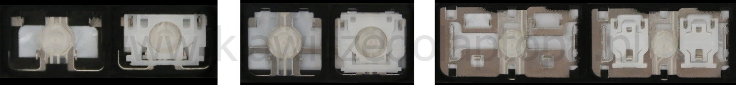 - Bei den meisten Tastaturen, die von außen identisch aussehen, wurden unterschiedliche Arten von Scharnieren unter den Tasten verwendet.