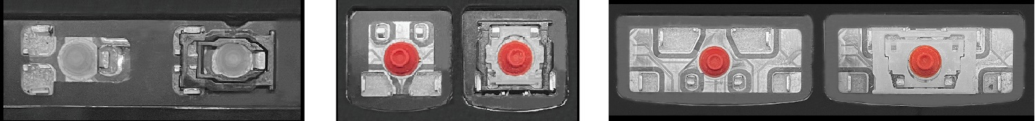 - Bei den meisten Tastaturen, die von außen identisch aussehen, wurden unterschiedliche Arten von Scharnieren unter den Tasten verwendet.