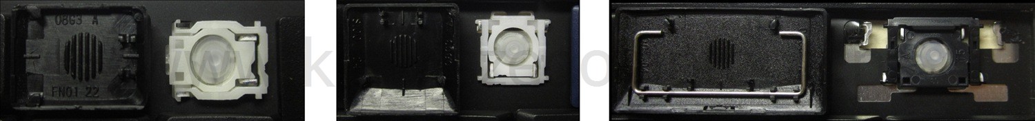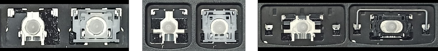- Bei den meisten Tastaturen, die von außen identisch aussehen, wurden unterschiedliche Arten von Scharnieren unter den Tasten verwendet.