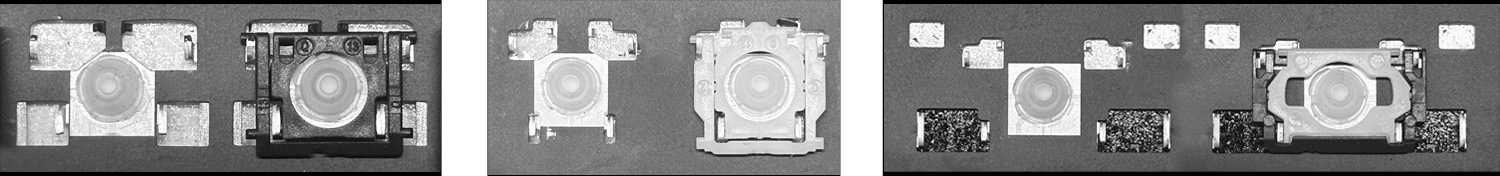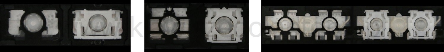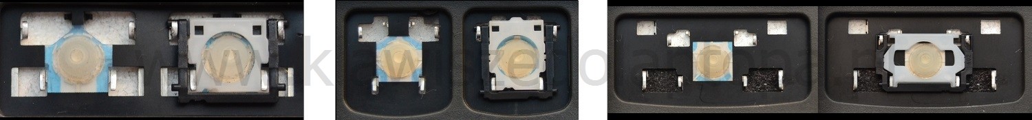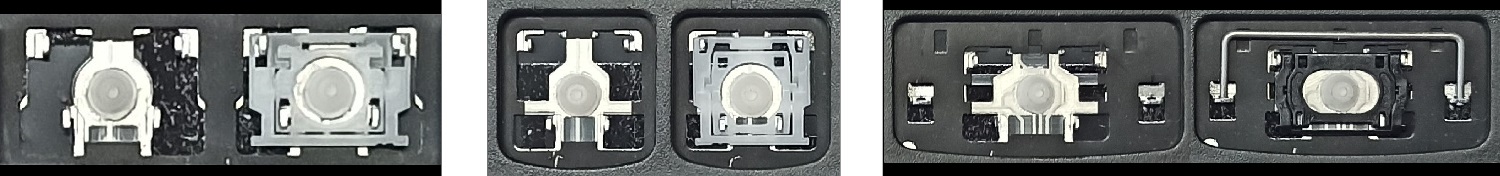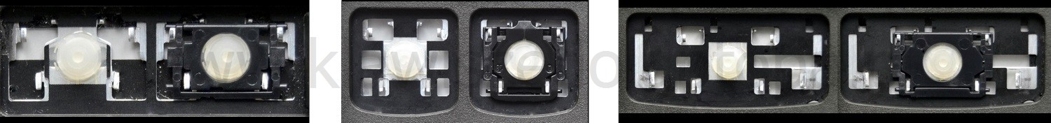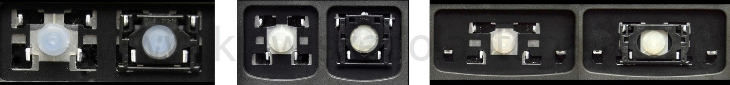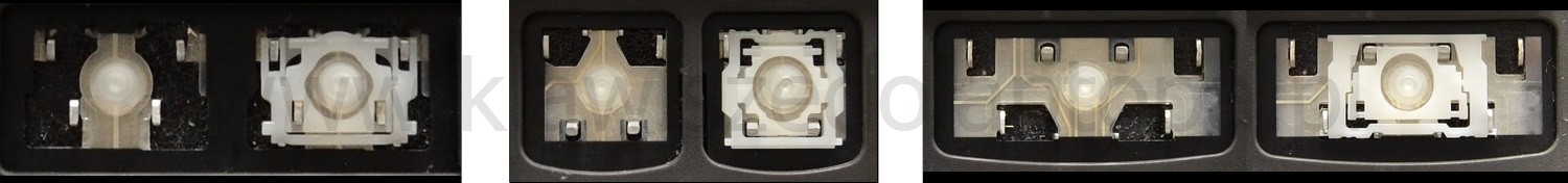 - Bei den meisten Tastaturen, die von außen identisch aussehen, wurden unterschiedliche Arten von Scharnieren unter den Tasten verwendet.
