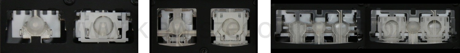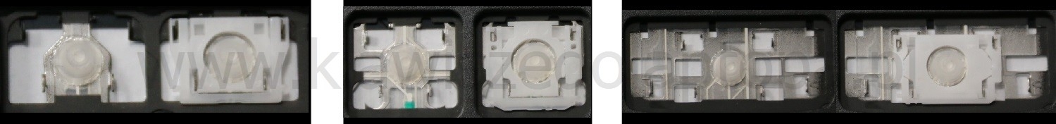 - Bei den meisten Tastaturen, die von außen identisch aussehen, wurden unterschiedliche Arten von Scharnieren unter den Tasten verwendet.