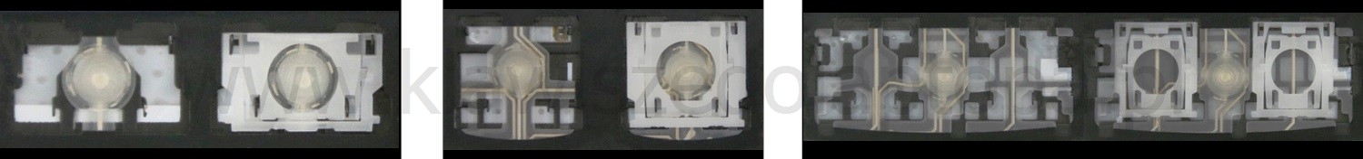 - Bei den meisten Tastaturen, die von außen identisch aussehen, wurden unterschiedliche Arten von Scharnieren unter den Tasten verwendet.