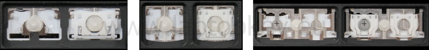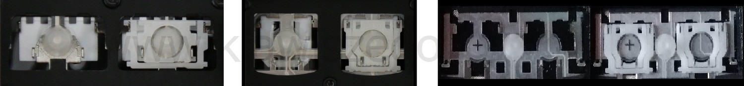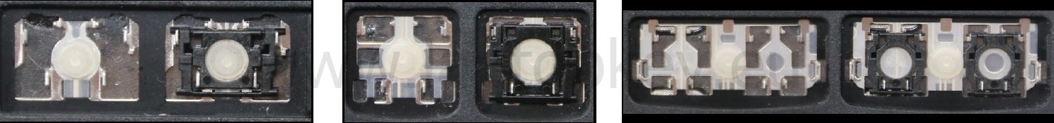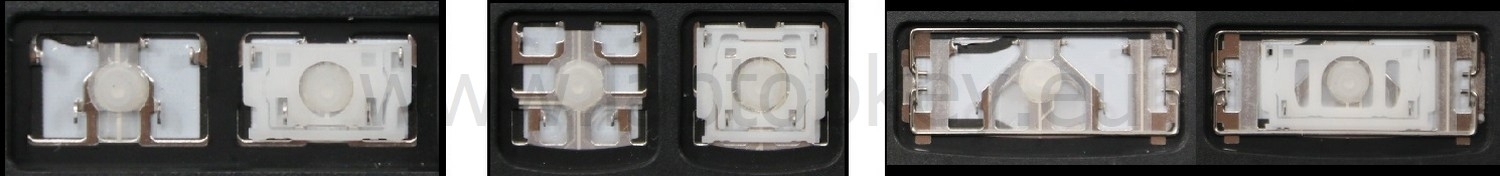 - Bei den meisten Tastaturen, die von außen identisch aussehen, wurden unterschiedliche Arten von Scharnieren unter den Tasten verwendet.
