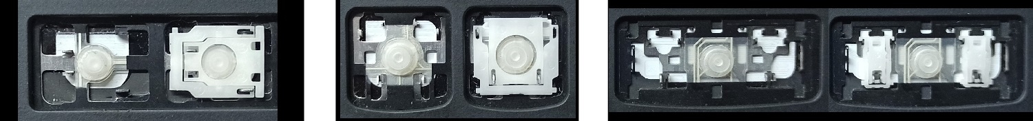- Bei den meisten Tastaturen, die von außen identisch aussehen, wurden unterschiedliche Arten von Scharnieren unter den Tasten verwendet.