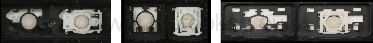 - Bei den meisten Tastaturen, die von außen identisch aussehen, wurden unterschiedliche Arten von Scharnieren unter den Tasten verwendet.