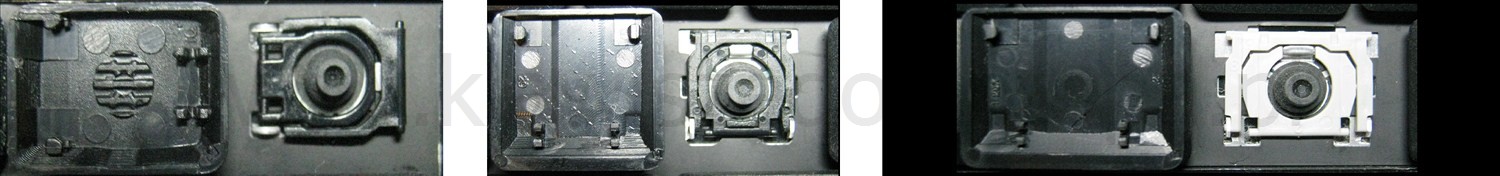 - Bei den meisten Tastaturen, die von außen identisch aussehen, wurden unterschiedliche Arten von Scharnieren unter den Tasten verwendet.