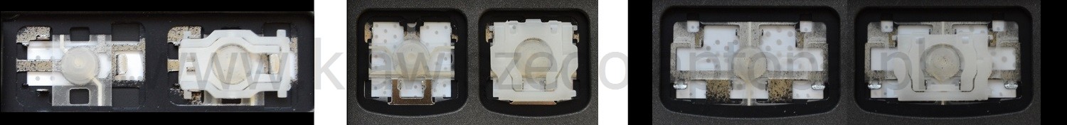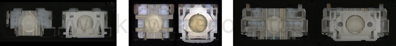 - Bei den meisten Tastaturen, die von außen identisch aussehen, wurden unterschiedliche Arten von Scharnieren unter den Tasten verwendet.