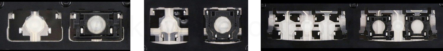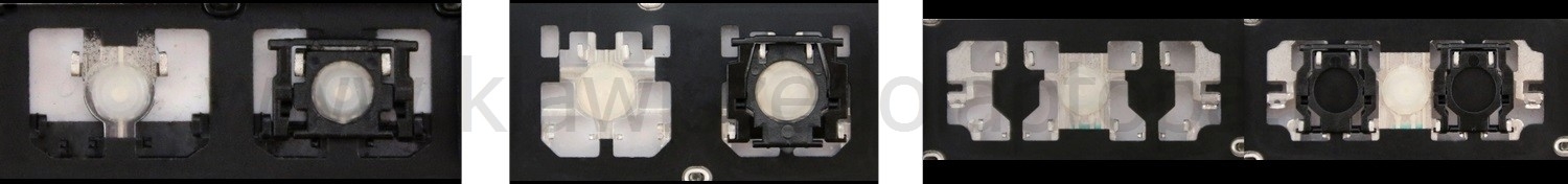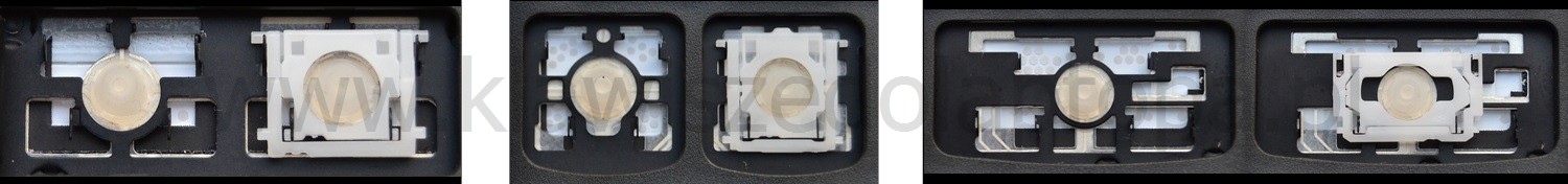 - Bei den meisten Tastaturen, die von außen identisch aussehen, wurden unterschiedliche Arten von Scharnieren unter den Tasten verwendet.