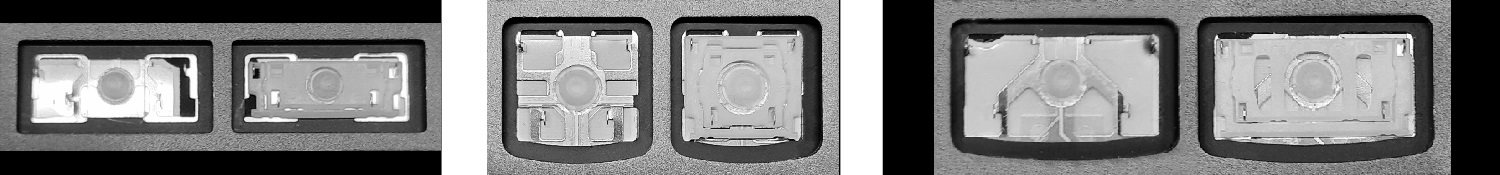 - Bei den meisten Tastaturen, die von außen identisch aussehen, wurden unterschiedliche Arten von Scharnieren unter den Tasten verwendet.