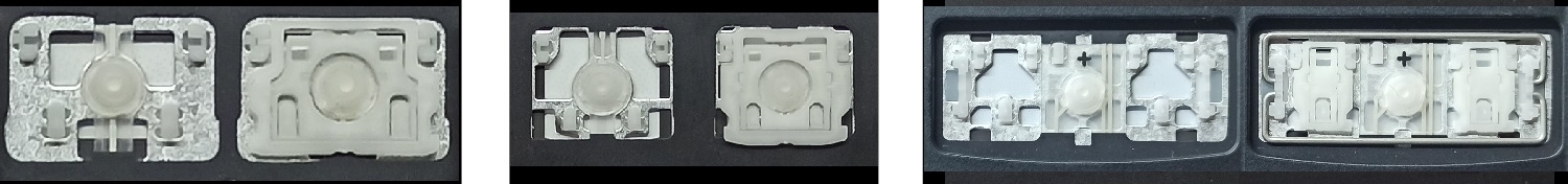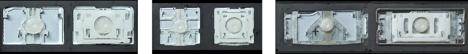 - Bei den meisten Tastaturen, die von außen identisch aussehen, wurden unterschiedliche Arten von Scharnieren unter den Tasten verwendet.