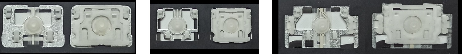 - Bei den meisten Tastaturen, die von außen identisch aussehen, wurden unterschiedliche Arten von Scharnieren unter den Tasten verwendet.