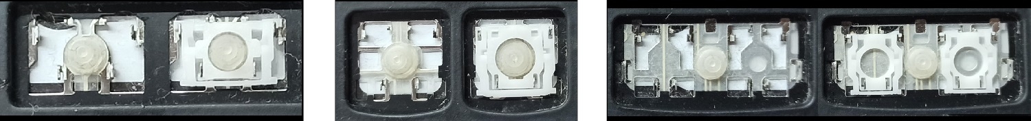 - Bei den meisten Tastaturen, die von außen identisch aussehen, wurden unterschiedliche Arten von Scharnieren unter den Tasten verwendet.