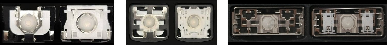 - Bei den meisten Tastaturen, die von außen identisch aussehen, wurden unterschiedliche Arten von Scharnieren unter den Tasten verwendet.