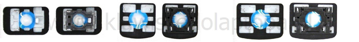- Bei den meisten Tastaturen, die von außen identisch aussehen, wurden unterschiedliche Arten von Scharnieren unter den Tasten verwendet.