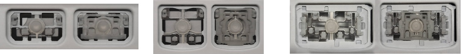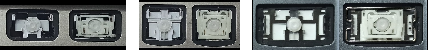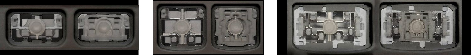 - Bei den meisten Tastaturen, die von außen identisch aussehen, wurden unterschiedliche Arten von Scharnieren unter den Tasten verwendet.