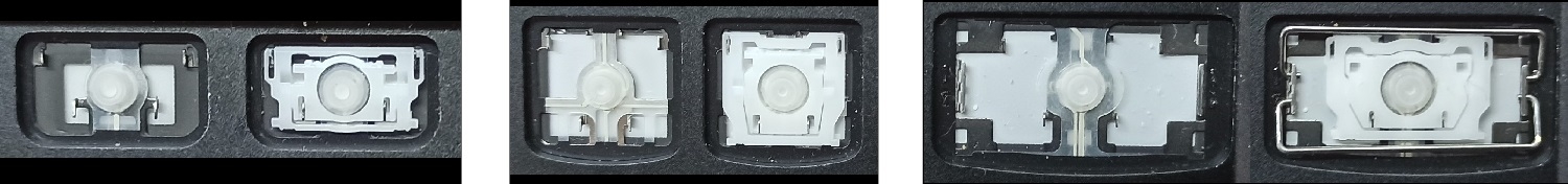 - Bei den meisten Tastaturen, die von außen identisch aussehen, wurden unterschiedliche Arten von Scharnieren unter den Tasten verwendet.