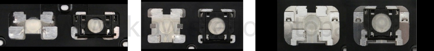 - Bei den meisten Tastaturen, die von außen identisch aussehen, wurden unterschiedliche Arten von Scharnieren unter den Tasten verwendet.