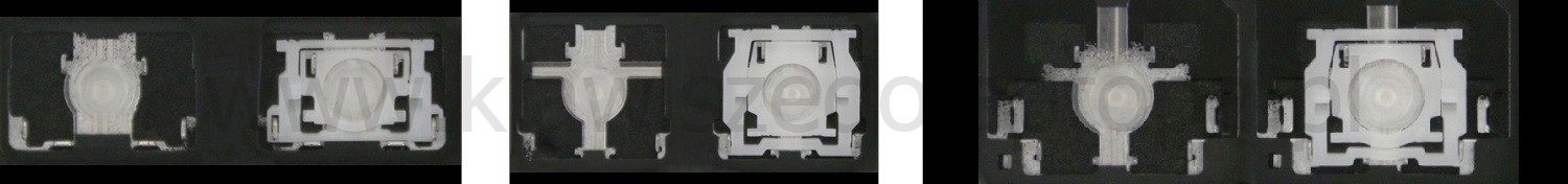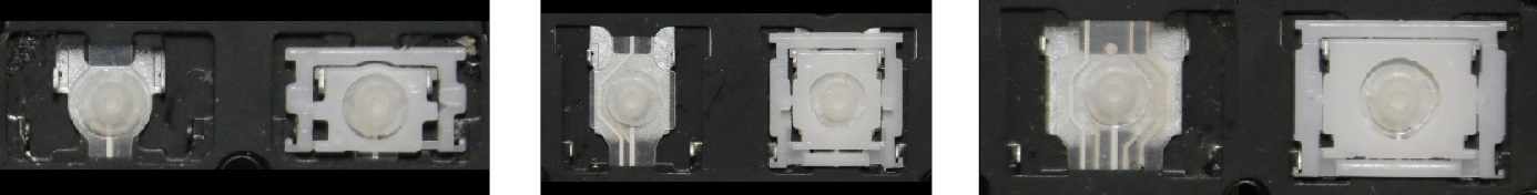 - Bei den meisten Tastaturen, die von außen identisch aussehen, wurden unterschiedliche Arten von Scharnieren unter den Tasten verwendet.