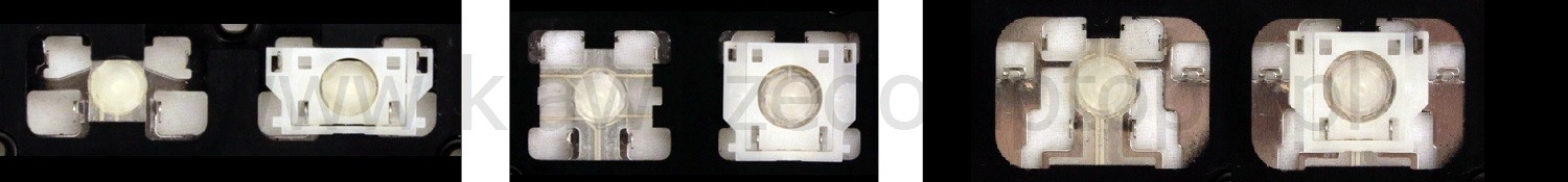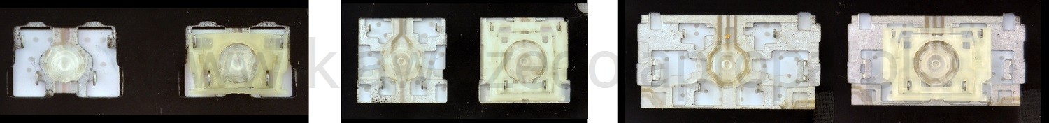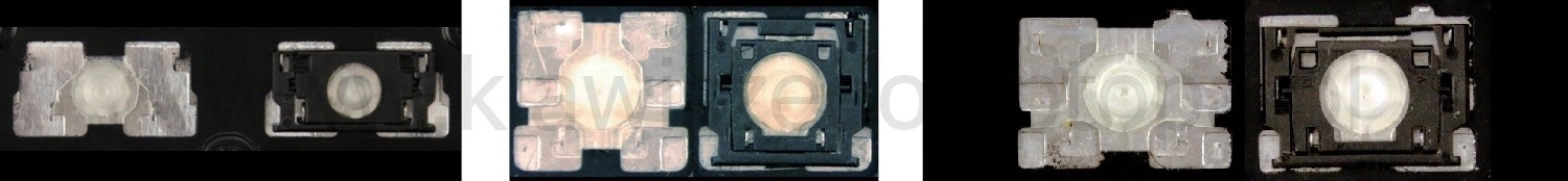 - Bei den meisten Tastaturen, die von außen identisch aussehen, wurden unterschiedliche Arten von Scharnieren unter den Tasten verwendet.