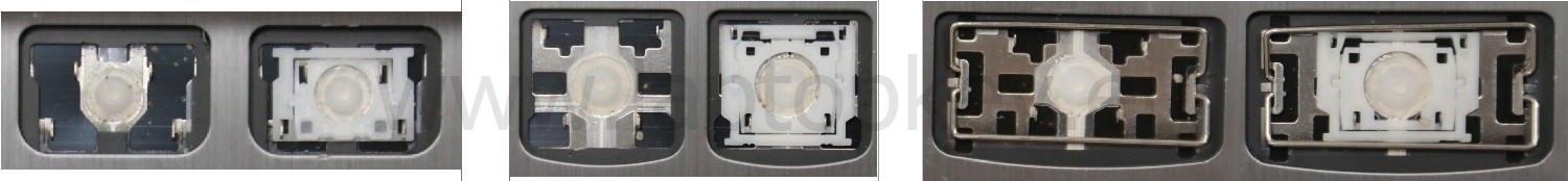 - Bei den meisten Tastaturen, die von außen identisch aussehen, wurden unterschiedliche Arten von Scharnieren unter den Tasten verwendet.