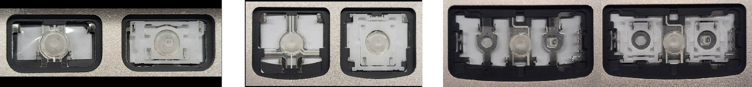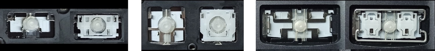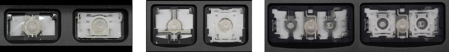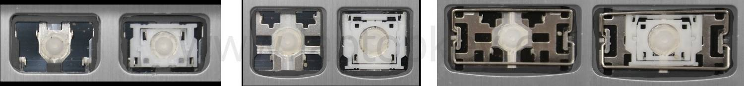 - Bei den meisten Tastaturen, die von außen identisch aussehen, wurden unterschiedliche Arten von Scharnieren unter den Tasten verwendet.