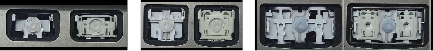 - Bei den meisten Tastaturen, die von außen identisch aussehen, wurden unterschiedliche Arten von Scharnieren unter den Tasten verwendet.
