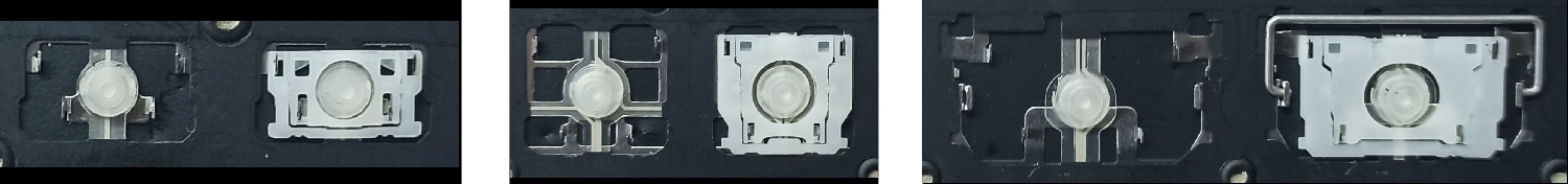- Bei den meisten Tastaturen, die von außen identisch aussehen, wurden unterschiedliche Arten von Scharnieren unter den Tasten verwendet.