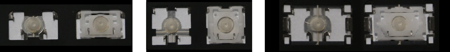 - Bei den meisten Tastaturen, die von außen identisch aussehen, wurden unterschiedliche Arten von Scharnieren unter den Tasten verwendet.