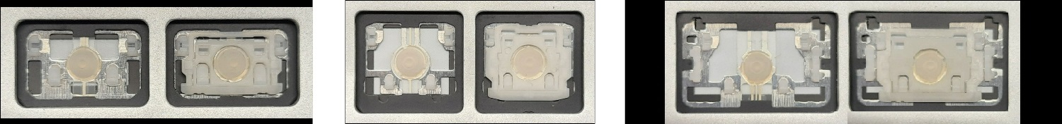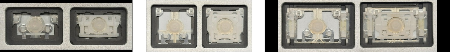 - Bei den meisten Tastaturen, die von außen identisch aussehen, wurden unterschiedliche Arten von Scharnieren unter den Tasten verwendet.