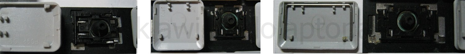 - Bei den meisten Tastaturen, die von außen identisch aussehen, wurden unterschiedliche Arten von Scharnieren unter den Tasten verwendet.