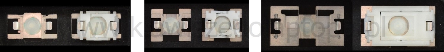 - Bei den meisten Tastaturen, die von außen identisch aussehen, wurden unterschiedliche Arten von Scharnieren unter den Tasten verwendet.