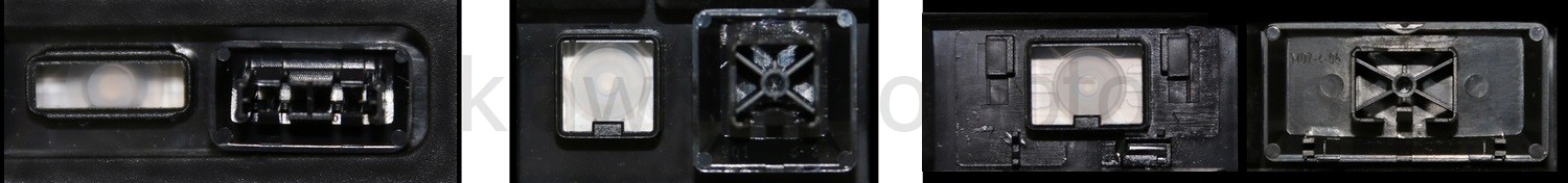 - Bei den meisten Tastaturen, die von außen identisch aussehen, wurden unterschiedliche Arten von Scharnieren unter den Tasten verwendet.