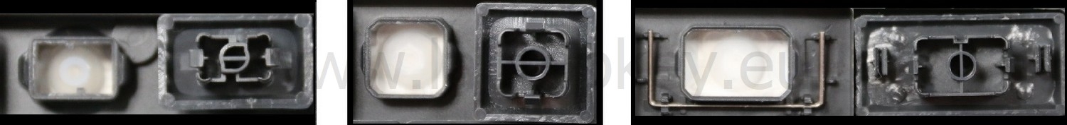 - Bei den meisten Tastaturen, die von außen identisch aussehen, wurden unterschiedliche Arten von Scharnieren unter den Tasten verwendet.