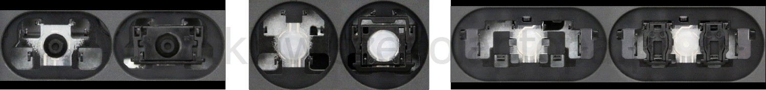 - Bei den meisten Tastaturen, die von außen identisch aussehen, wurden unterschiedliche Arten von Scharnieren unter den Tasten verwendet.