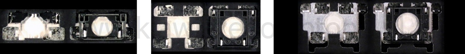 - Bei den meisten Tastaturen, die von außen identisch aussehen, wurden unterschiedliche Arten von Scharnieren unter den Tasten verwendet.