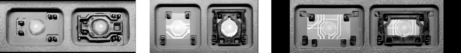 - Bei den meisten Tastaturen, die von außen identisch aussehen, wurden unterschiedliche Arten von Scharnieren unter den Tasten verwendet.