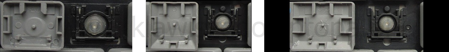 - Bei den meisten Tastaturen, die von außen identisch aussehen, wurden unterschiedliche Arten von Scharnieren unter den Tasten verwendet.