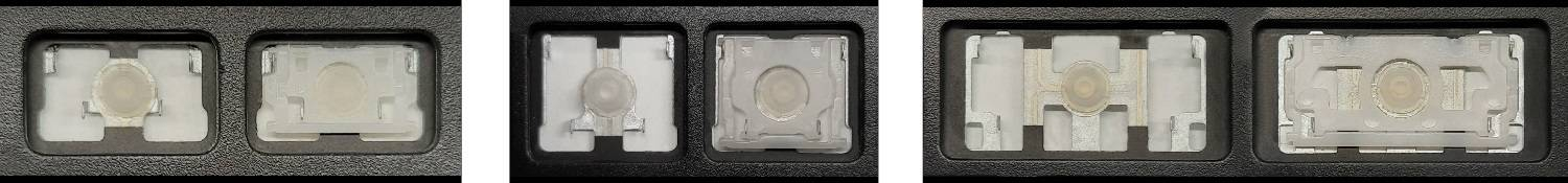 - Bei den meisten Tastaturen, die von außen identisch aussehen, wurden unterschiedliche Arten von Scharnieren unter den Tasten verwendet.