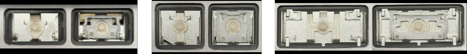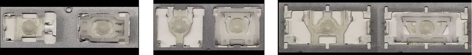 - Bei den meisten Tastaturen, die von außen identisch aussehen, wurden unterschiedliche Arten von Scharnieren unter den Tasten verwendet.