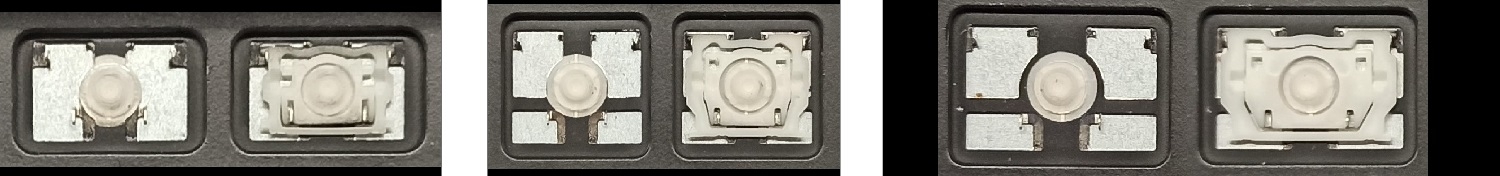 - Bei den meisten Tastaturen, die von außen identisch aussehen, wurden unterschiedliche Arten von Scharnieren unter den Tasten verwendet.