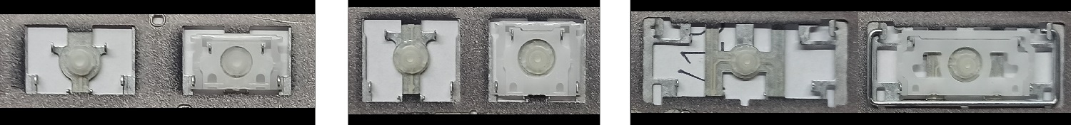 - Bei den meisten Tastaturen, die von außen identisch aussehen, wurden unterschiedliche Arten von Scharnieren unter den Tasten verwendet.