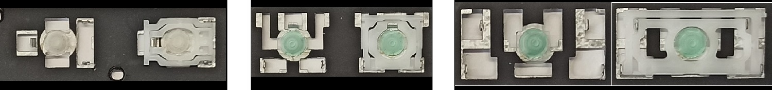 - Bei den meisten Tastaturen, die von außen identisch aussehen, wurden unterschiedliche Arten von Scharnieren unter den Tasten verwendet.