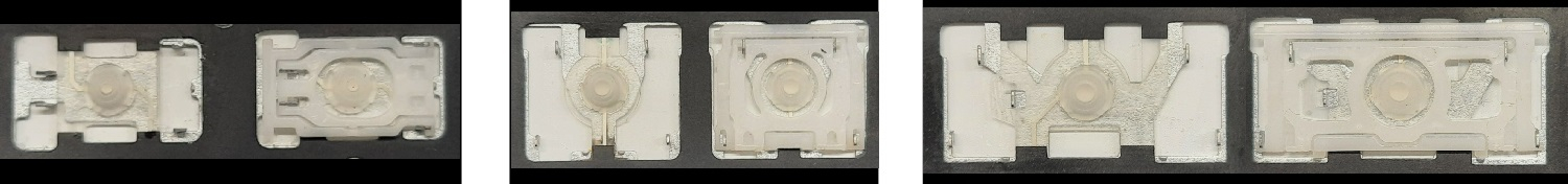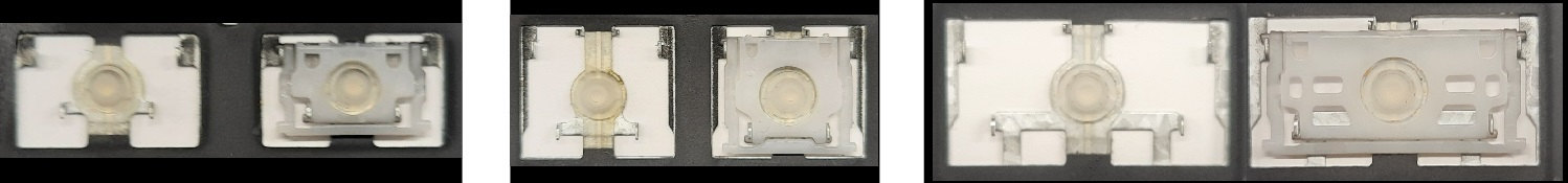 - Bei den meisten Tastaturen, die von außen identisch aussehen, wurden unterschiedliche Arten von Scharnieren unter den Tasten verwendet.