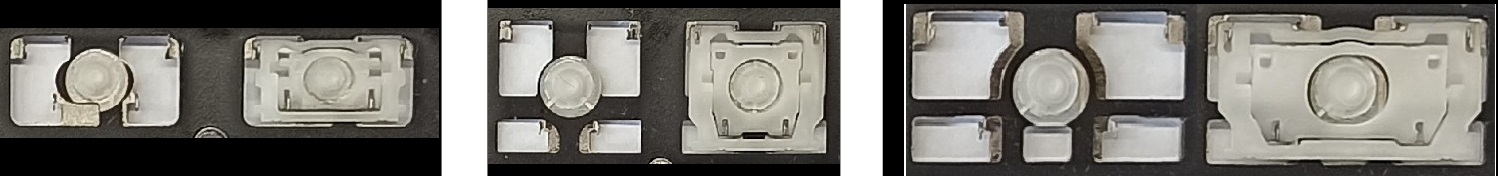- Bei den meisten Tastaturen, die von außen identisch aussehen, wurden unterschiedliche Arten von Scharnieren unter den Tasten verwendet.