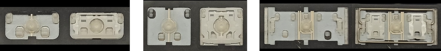 - Bei den meisten Tastaturen, die von außen identisch aussehen, wurden unterschiedliche Arten von Scharnieren unter den Tasten verwendet.