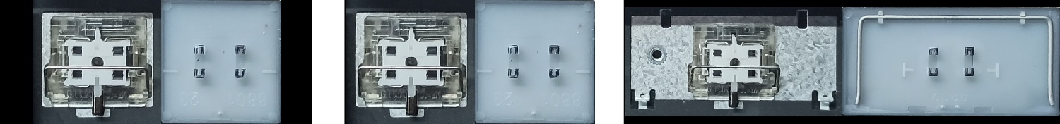 - Bei den meisten Tastaturen, die von außen identisch aussehen, wurden unterschiedliche Arten von Scharnieren unter den Tasten verwendet.