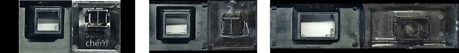 - Bei den meisten Tastaturen, die von außen identisch aussehen, wurden unterschiedliche Arten von Scharnieren unter den Tasten verwendet.